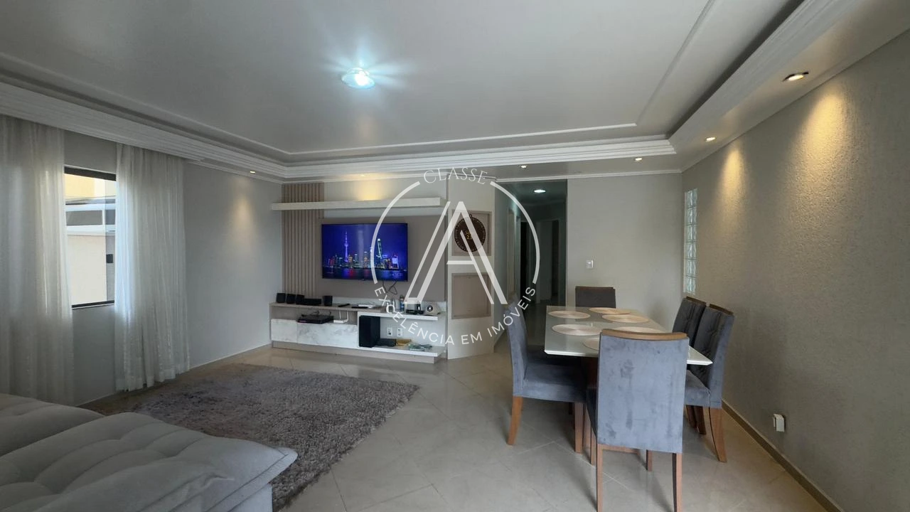 A residência possui mais de 90,00 metros quadrados construídos, conta com móveis planejados na cozinha, sala com lindo painel, banheiros com armários, 03 quartos amplos e garagem.